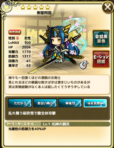 1位の阿国(おくに)は初期ゆるドラで強力かつ人気の光属性でした。