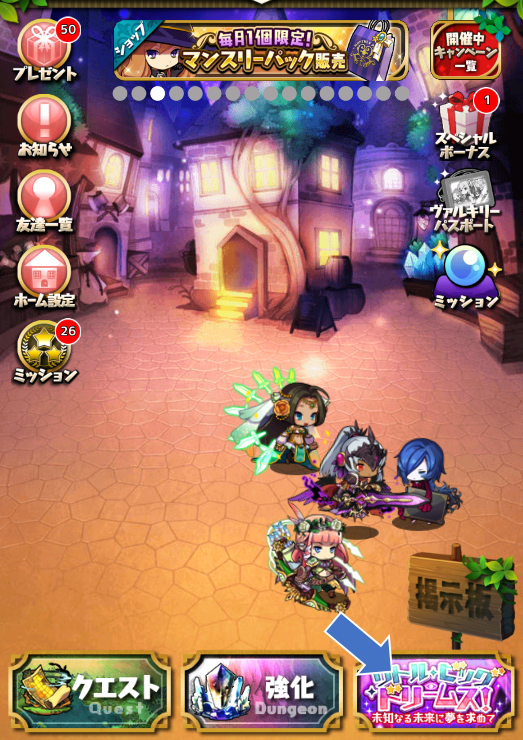 マナは通常のクエストや土曜、日曜日に【強化ステージ】で出現するマナダンジョンで入手できます。