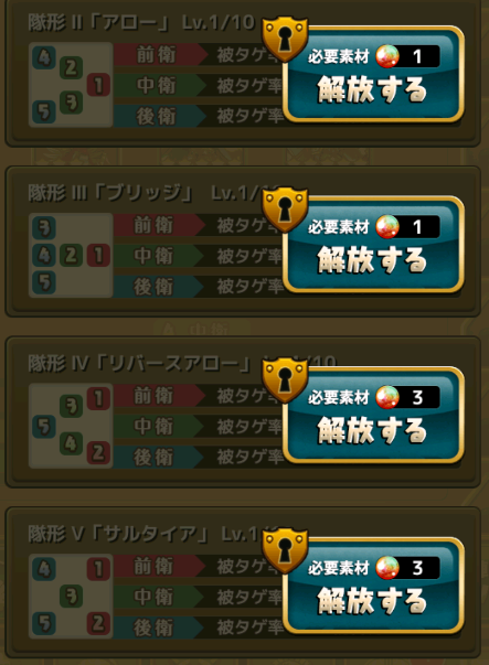 陣形の解放は及び確認は陣形画面の【陣形変更】から行えます。