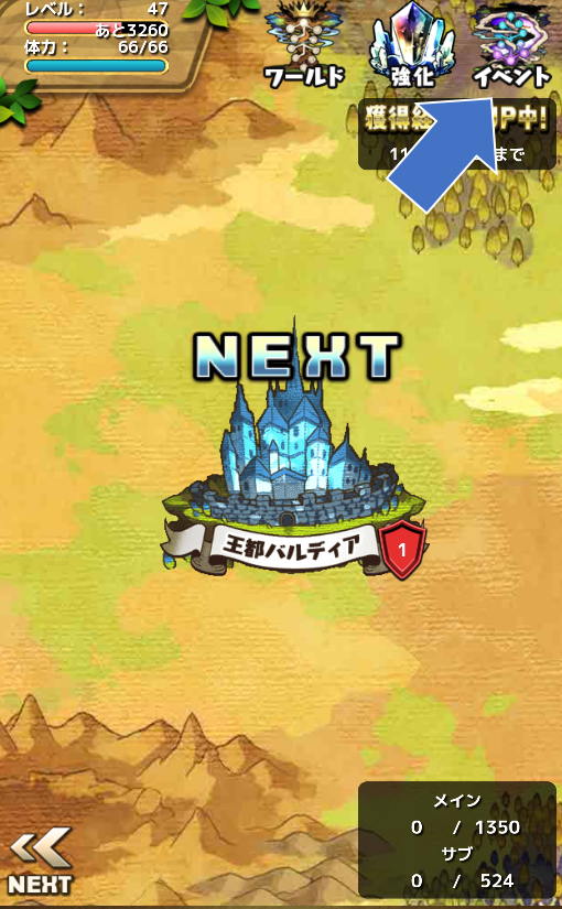 【ホーム】の右下にあるイベント名をタップするか【クエスト】画面の