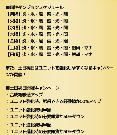 土曜日、日曜日、祝日は強化経験値がUP、消費銀貨も大幅にカットされるわ、強化するなその日にしなさい
