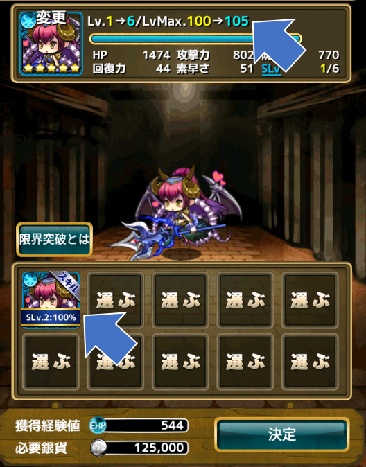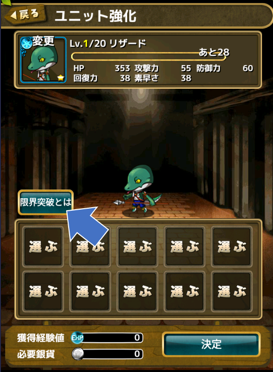 ※限界突破はあくまでレベルの最大値を上げるための物です。レベルは別途上げる必要があります。