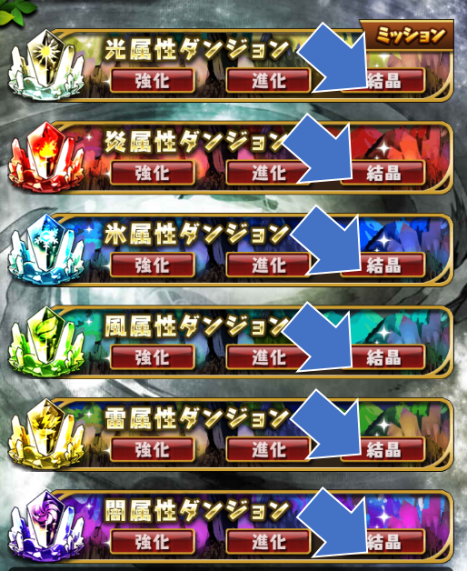 装備拡張に必要な結晶ダンジョンは【初級】【中級】【上級】【超級】で分かれてるよ。【上級】や【超級】のほうが効率がいいけど敵が強いから注意だよ!