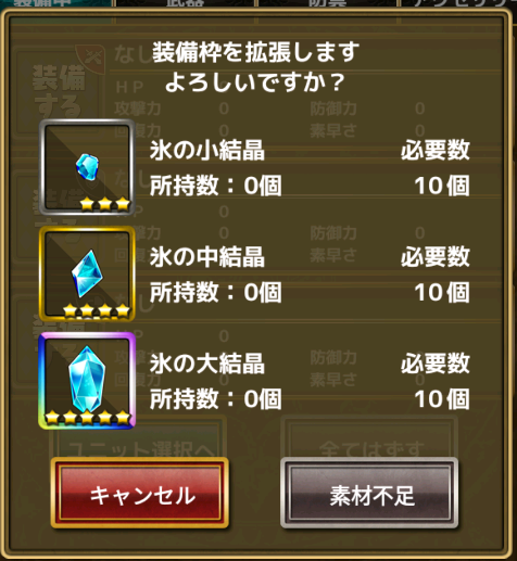 +をタップすると【結晶】を使って装備枠の拡張が行えます。