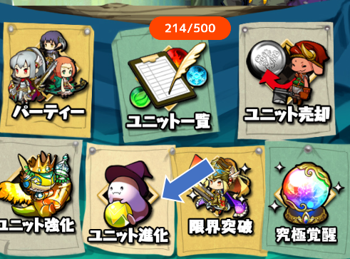イベントの報酬ユニットや一部のユニットは【進化素材】が限定されていることもあるわ。いずれも進化画面で確認が可能よ