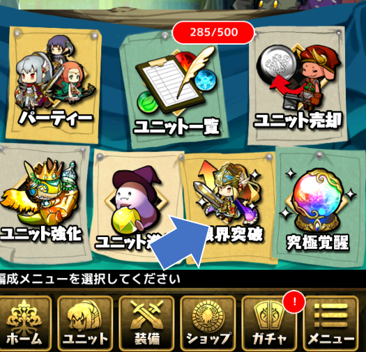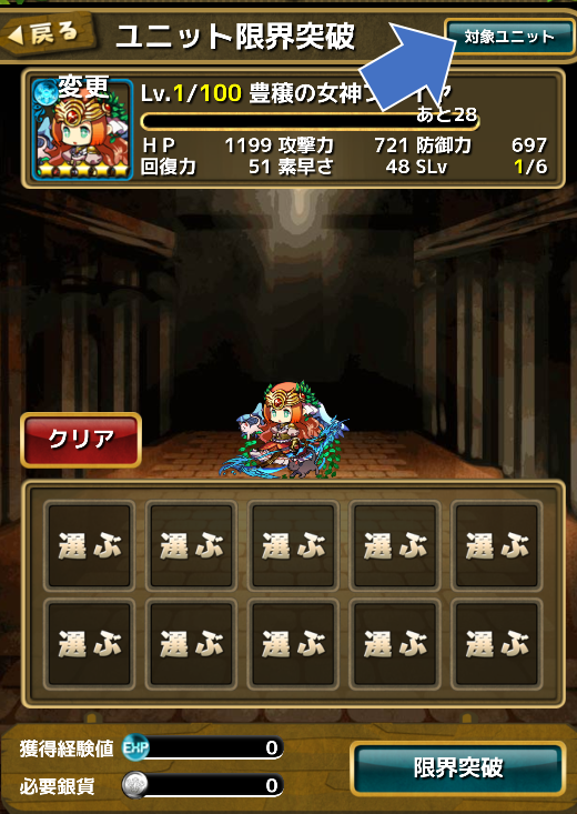 進化させたいユニットと同じ属性のダンジョンをクリアしましょう。