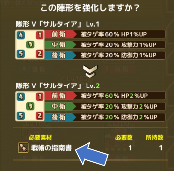 陣形は強化する事が可能です。【陣形】メニューより【陣形強化】を選択します