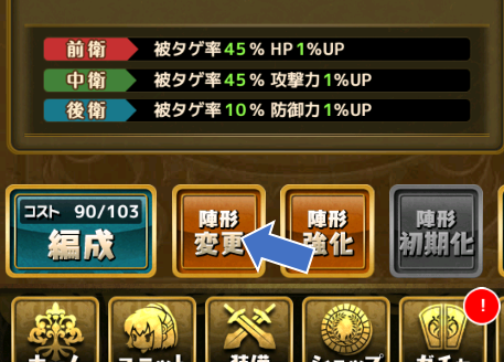 【ユニット】→【パーティ】に【陣形】の項目があるのでタップします。