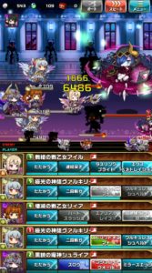 またミストの攻撃で一番防御力があるはずの【極光の神徒ヴァルキリー】が1500に近いダメージを受けます。