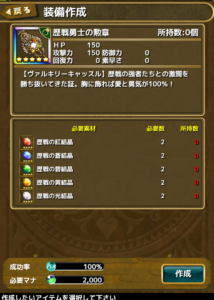 歴戦勇士の勲章(一回のみ生産可能)
