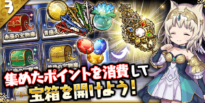 クリアすると片翼ptが入手出来るのでイベント、トップ【宝物庫】より宝箱をポイントと引き換えに開くことができます。