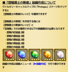 装備のレシピはイベントプロローグ、【潜入!ヴァルキリーキャッスル】をクリアすると自動で入手できます。