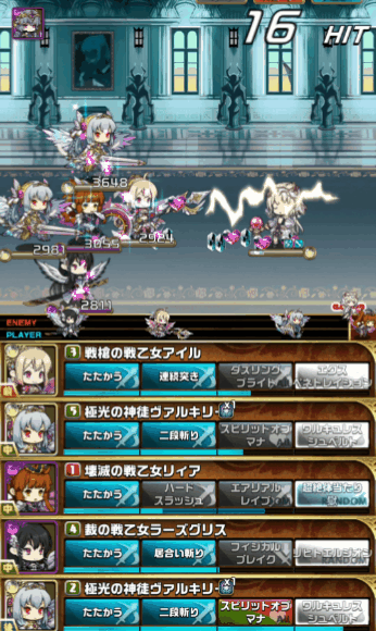 ヒットする毎に威力が増していく【ワルキュレスシュベルト】の7段目でも13000程度のダメージしか出ません。一応私の【極光の神徒ヴァルキリー】は覚醒しているので攻撃力は3500を超えているはずなのですが…