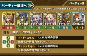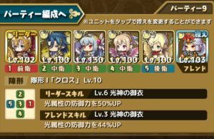 フレンドはサブアカの【アマテラス】【スキル:光神の御衣Lv3防御力44%UP】です。
