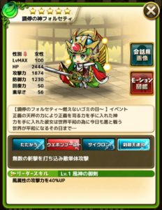 攻撃力と回復力が高い光ユニットあるあるなステータスを持っています。正直キャラの面白さで有れば間違いなく1位です。個人的にも結構好き^^