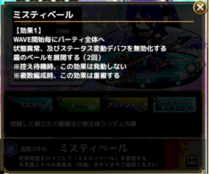 【効果1】WAVE開始毎にパーティ全体へ状態異常、及びステータス変動デバフを無効化する霧のベールを展開する(2回)