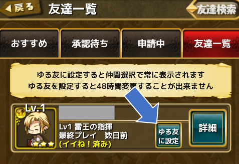 フレンドも統一したスキル。スキルレベルの高いフレンドを選択しましょう!