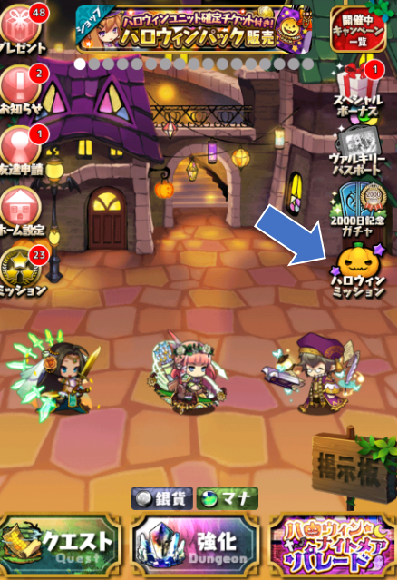 ホームのハロウィンミッションからでも確認可能です。