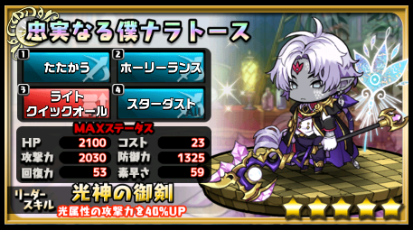 イベント報酬のユニットはステータスがイマイチな事が多いですがナラトースはなかなかの性能です。