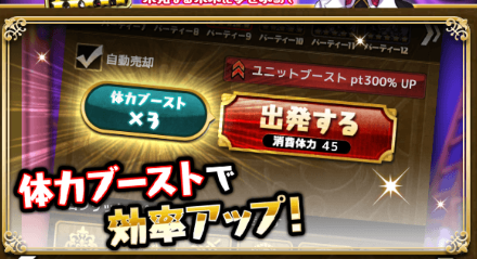 冒頭で説明した【体力ブースト】も積極的に使って行きましょう^^