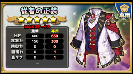 HPは超低いですが専用装備【従者の正装】やHPが上昇する装備でカバーすれば問題ありません。