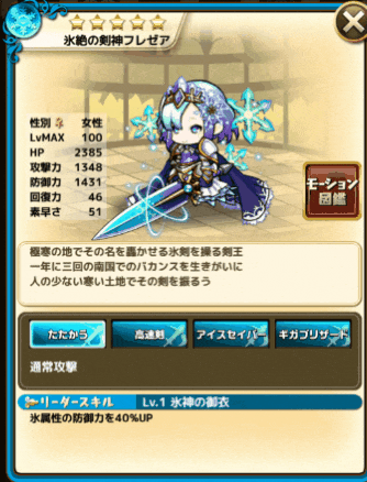 クラッシックガチャからでも入手可能な【フレゼア】が単体攻撃持ちで戦いやすいかも?