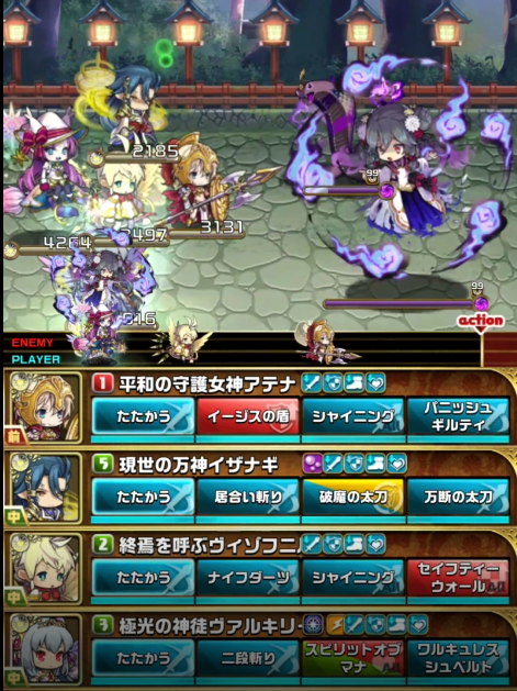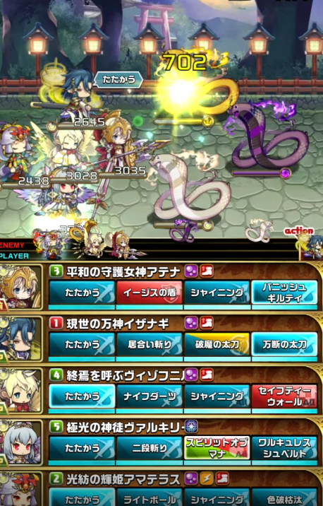 また単体回復技も使ってきます。当然ながら補助系のコマンドを使ってくる敵を優先して倒すべきなので【イザナミ】から倒しましょう!