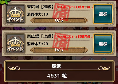 【初級】【上級】とありますが【上級】の方がドロップ率(100%?)が高く入手できる魔滅が多いのでオススメです^^