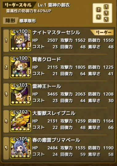 雷属性は純粋なヒーラーが少ないため少々 編成が大変かもしれません。