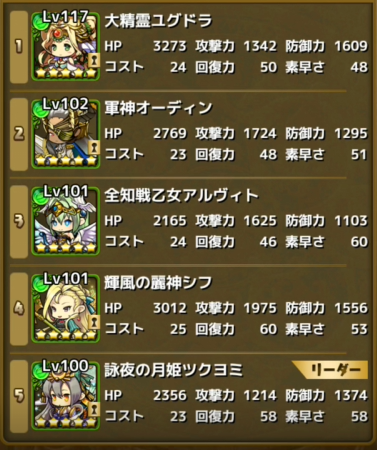 結論は光属性のリーダスキル【神楽】(素早さUP)が安定して戦えそうです^^