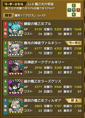 最初はやはり高火力 戦乙女軍団で挑みます。