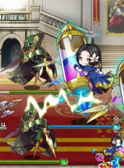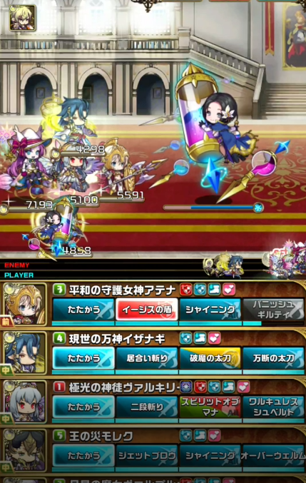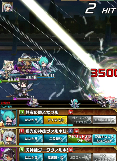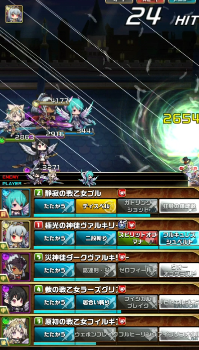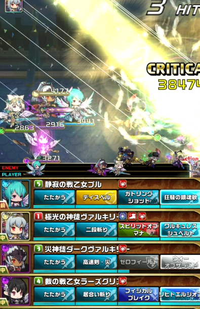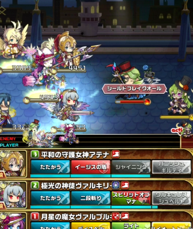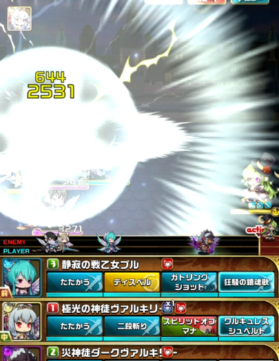 一度単体攻撃をもらい焦りましたがダークヴァルキリーの【ゼロフィールド】でダメを軽減できたのとラーズグリスの【フィジカルブレイク】で攻撃力が下がっていたことが幸いし何とか耐えることができました^^