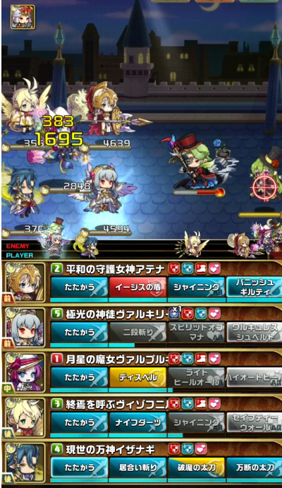 本当は【セアリアス】がシールドブレイクオールでこちらの防御力を下げ強力な単体攻撃でフィニッシュの流れになるはずですが相手が面倒な行動をする前に倒します。