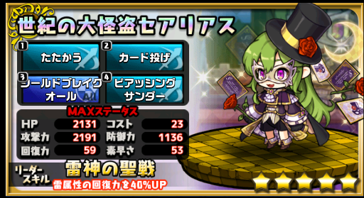 HPが上昇するリーダスキルに加え貴重な全体回復コマンドまで使えるのでゲットしておくと攻略が楽になるかも?