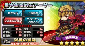 【黒き焦炎の王アーサー】限定ガチャ ボスガチャで入手可能