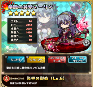 リーダースキルは炎属性であればHPを上昇させる祝福効果。円卓の騎士であれば攻撃力を上昇させる効果となります。