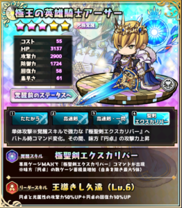 円卓の騎士、リーダー的ポジションであるアーサーは覚醒ユニットに相応しいですね^^