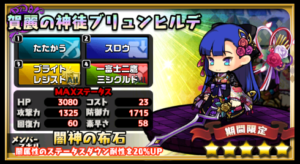 雷属性の回復ユニットは(記事掲載時)メダル交換所で入手できる【小さな酒神スクナヒコナ】がオススメです^^
