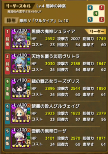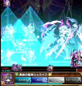 またリーダに選択しているシュライアは神楽スキルに加え味方全体に一定のダメ―ジまで無効にする【インシュレイトウォール】がいい仕事をしてくれます^^