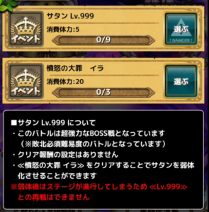 サタンは倒しても何回でもプレイできますが報酬は一回のみ。メチャ強力な敵なので報酬が不要なプレイヤーはスルーでOK!