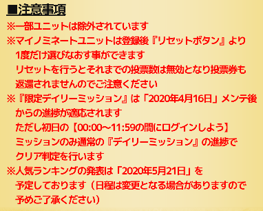 投票数が多いキャラは限定ユニットとして再登場したり別バージョンとして実装される可能性があります。