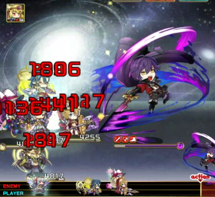 全体攻撃や単体攻撃を放ちます。単体攻撃にはHPを回復してしまう効果あり。