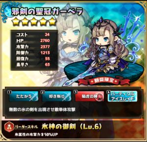 同じ効果を持つユニットは【純輝の花嫁ノーデンス】と【邪剣の聖冠ガーベラ】