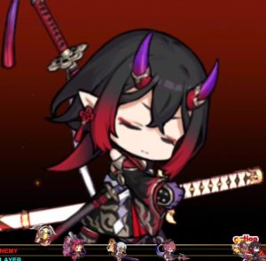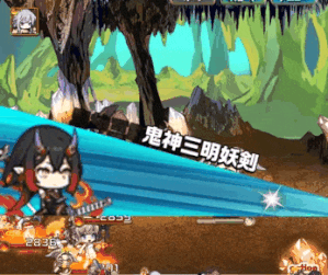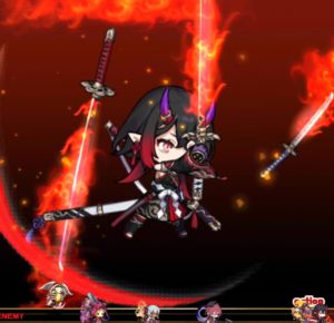 4【鬼神三明妖剣】三名刀の斬撃で敵単体に攻撃し大きくのけぞらせる