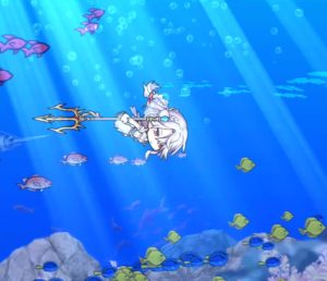 4【マーメイドダイヴ】泳げない事を忘れて波に潜り、敵全体をランダム攻撃し素早さを下げる