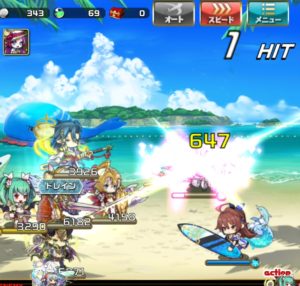 4【サマービーチナイト】敵単体を攻撃し、与えたダメージの一部を回復※30%の確率で自身の攻撃力も大きくアップ(3ターン)