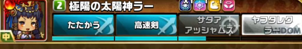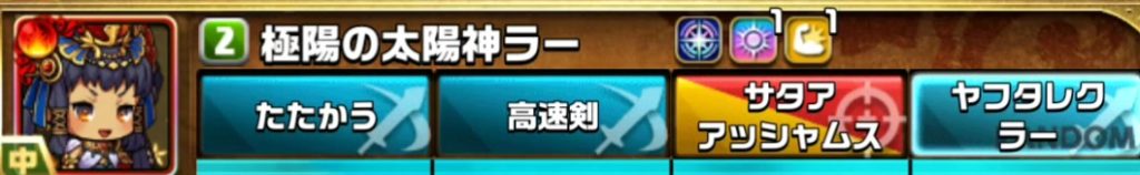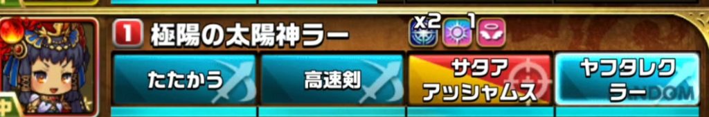3【サタアアッシャムス】輝く太陽を見に宿し自分の防御力をアップ。「挑発」状態と「再生」状態を付与