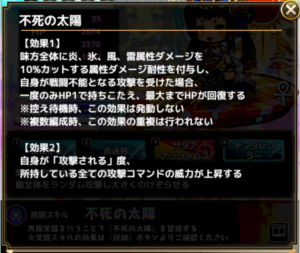 戦闘不能になるダメージを受けても1で耐える根性状態と覚醒スキル不死の太陽。