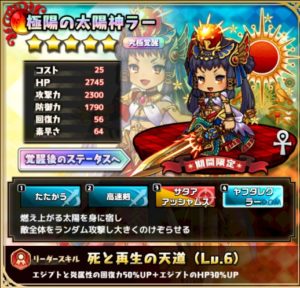 覚醒ユニットがない時代のPVP最強戦乙女決定戦ではラーを入れた編成でそこそこ上位に行けました^^