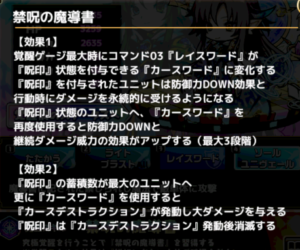 『呪印』の蓄積数が最大のユニットへ更に『カースワード』を使用すると『カースデストラクション』が発動し大ダメージを与える